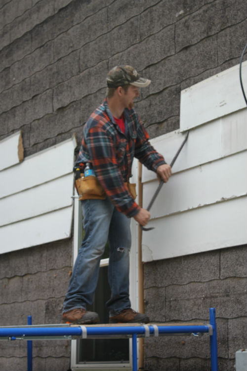 If you decide to tear off your siding, I advise that you give yourself more than one day to get it done. It worked out for us because Ryan and my dad are rock stars, but I think they might be hurting tomorrow.