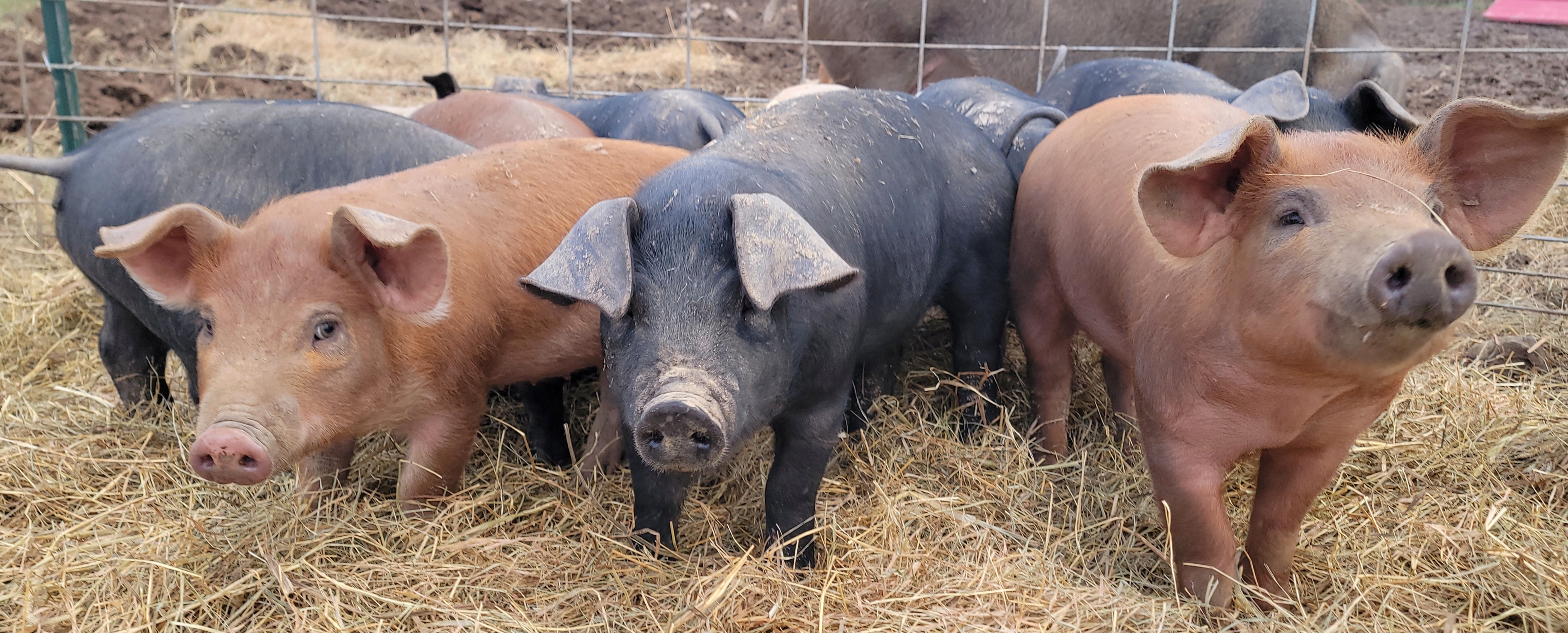 Here at Scott Family Homestead, we raise our heritage breed pigs outdoors on pasture. This allows pigs to engage in normal behaviors while growing a superior product for our customers. Only an estimated 2-4% of pork grown in the US is grown on dirt. While conventional systems, also called CAFOs or factory farms, grow most of the pork in the United States, the final product lacks the same nutrients and taste that can be achieved with pasture raised pigs. Additionally, there is a very drastic difference in conditions and welfare of the animals.